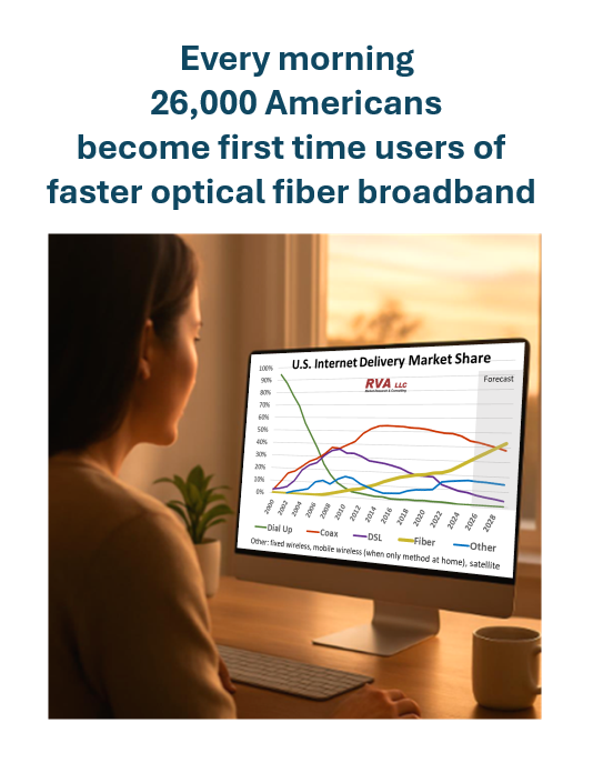 Respected RVA analysis helps illuminate the underlying trends driving the FTTH activity. Data is presented graphically and numerically, and includes history from 2001-2025, plus a 5-year (2026-2030) forecast with detailed breakouts. Besides the PDF report, users will receive a detailed spreadsheet on FTTH history and forecast, and a spreadsheet on BEAD awards by state.